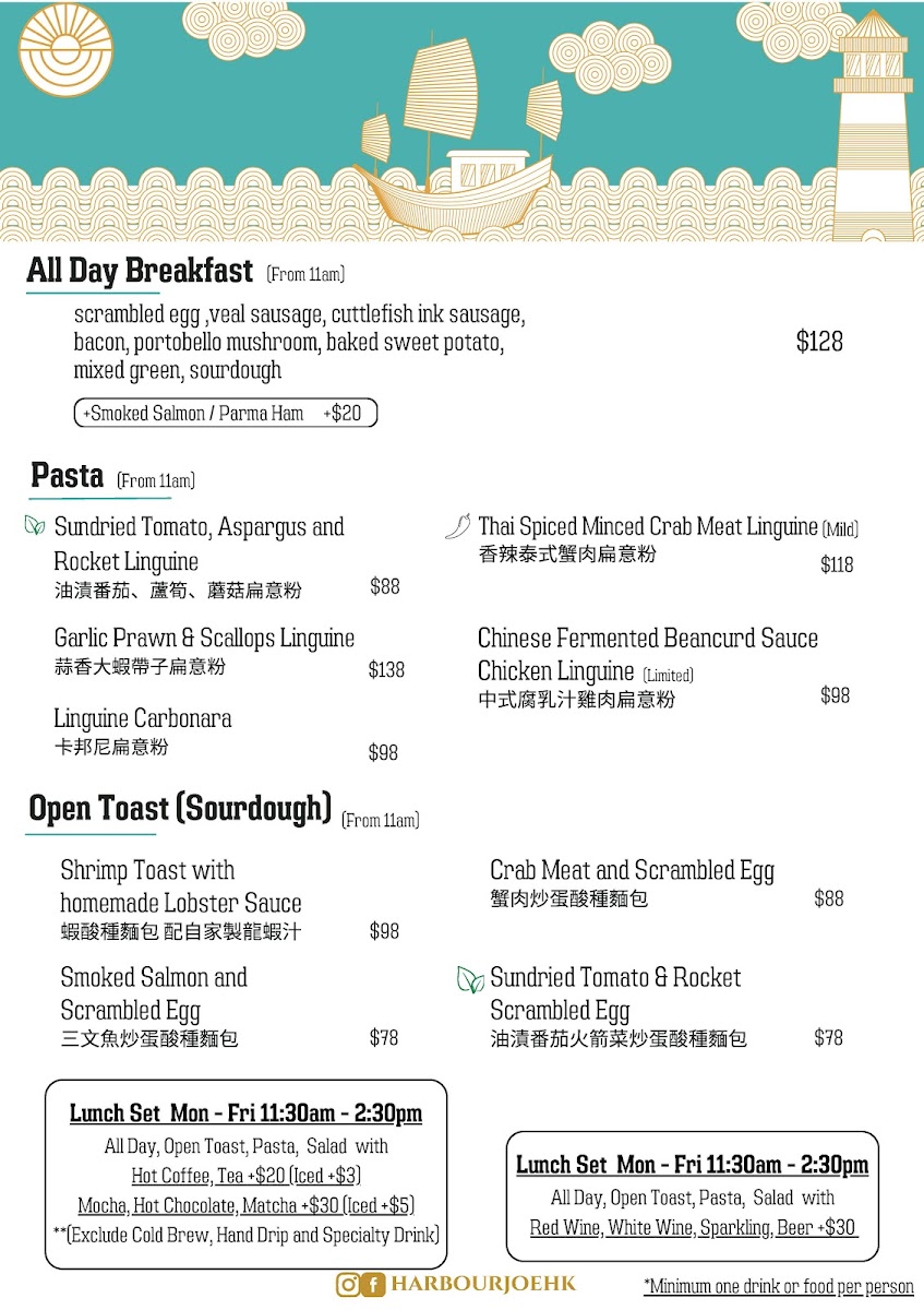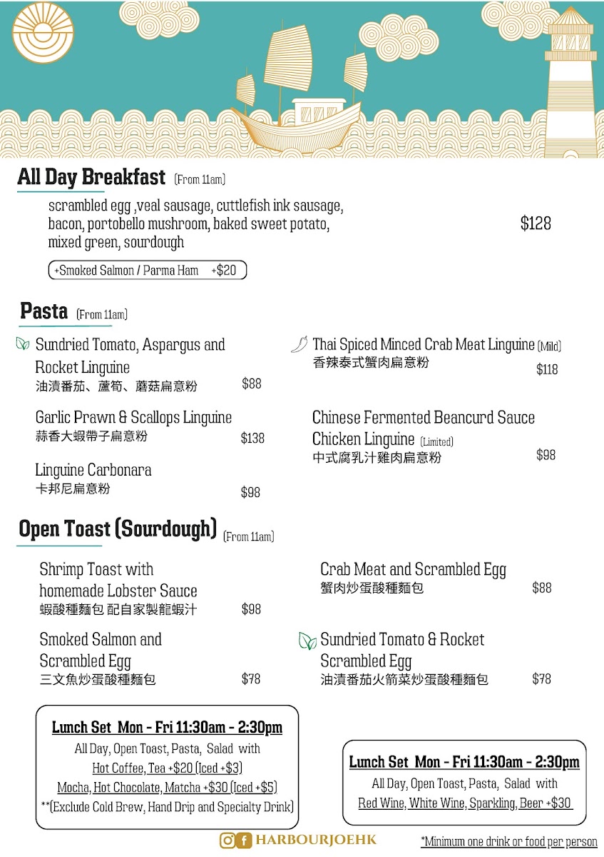 Harbour Joe's menu is a treasure trove of flavors. Kickstart your day with their all-day breakfast, featuring the Good Morning! Harbour Joe set, where eggcellent scrambled eggs meet a unique croffle for just HK$45. Don't miss their signature drink, Yu Is My Happiness, priced at HK$55, which promises a delightful experience with every sip.